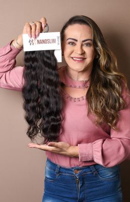 "In 2019, I had a chemical haircut and came to Vanessa with very short hair. At the time, I was using the adhesive method, but as soon as NANOSLIM launched, I made the switch immediately. It’s much more gentle and safe. Today, my natural hair reaches my waist, and I now use NANOSLIM just to add volume. I'm extremely satisfied with the health of my hair, which, although fine, adapted perfectly to the method and gave me the results I wanted. I can't live without it anymore!"